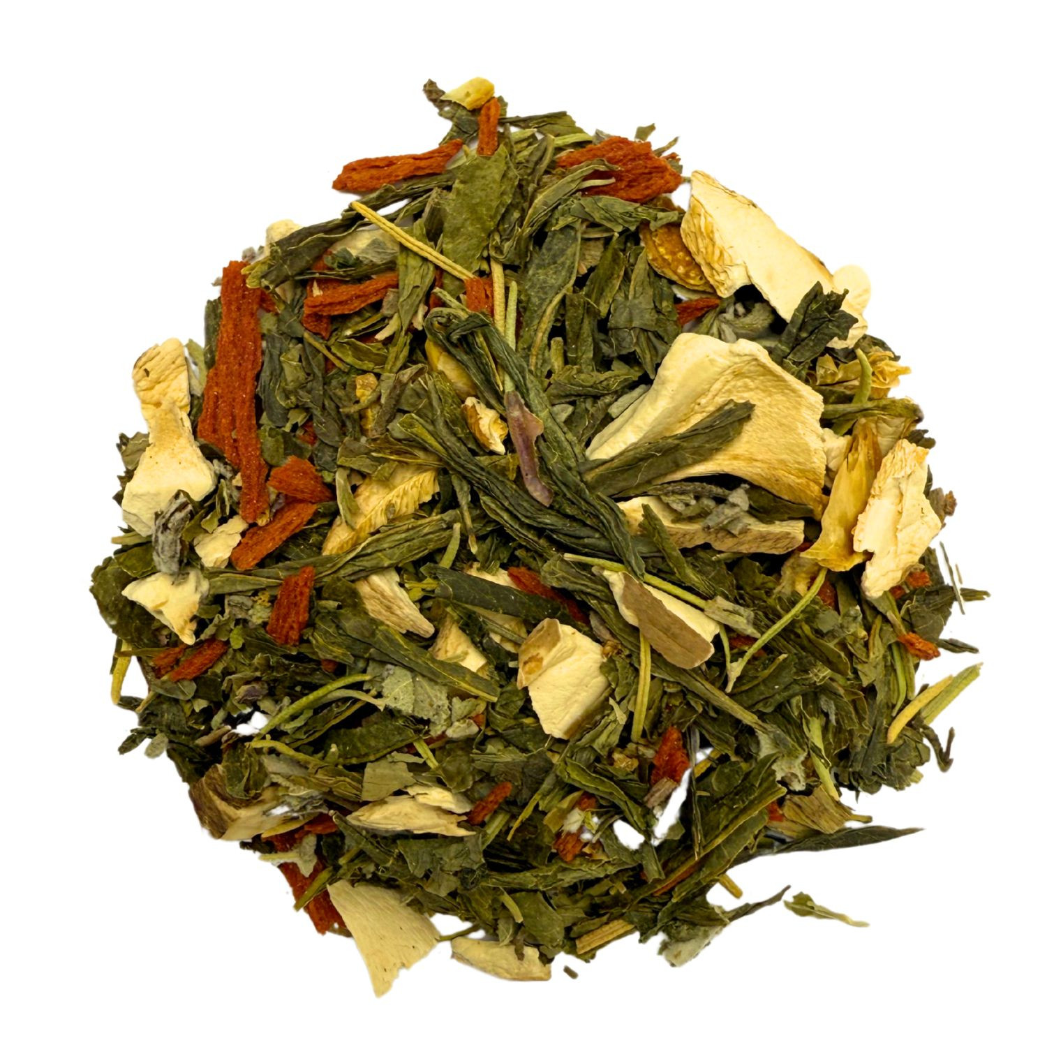 zeleni čaj (44 %), paradižnikovi kosmiči (paradižnik, koruzni škrob), šitake (12 %), limonina lupina, bazilika, listi žajblja, črni poper, listi rožmarina.