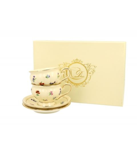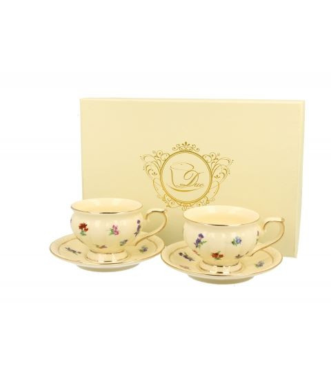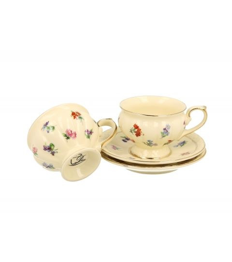 Vsaka skodelica je oblikovana z izjemno pozornostjo do detajlov – eterečna oblika na stopnji, okrašena z diskretnimi zlatimi robovi, izžareva pravi angleški čar in stil. Celoten komplet je dodatno polepšan z drobnim cvetličnim vzorcem v umirjenih tonih, ki v prostoru ustvarja romantično, toplo in prefinjeno vzdušje.
