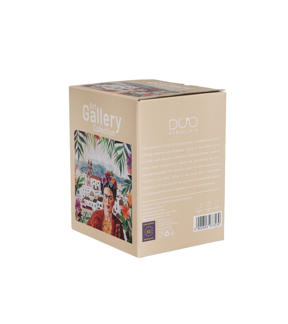 Skodelica je del kolekcije Art Gallery in je okrašena z barvitim motivom, navdihnjenim z interpretacijo avtoportreta ikonične mehiške umetnice. Živahni cvetovi v laseh simbolizirajo povezanost z naravo, slikovita vas v ozadju pa ustvarja edinstveno umetniško kompozicijo.