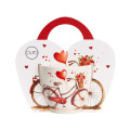 Skodelica je okrašena s prikupnim motivom kolesa z košem cvetlic, nad katerim se dvigajo majhna srca, ki simbolizirajo toplino, ljubezen in pozornost. Ta igriv in romantičen dizajn naredi lonček idealnega za skupne trenutke ob zajtrku ali večerni sprostitvi s skodelico čaja ali kave.