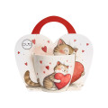 Skodelica z motivom mucka, ki v svojih tačkah stiska veliko rdeče srce, simbolizira toplino, ljubezen in pozornost. Ta čustveno obarvan dizajn naredi lonček idealen za romantične trenutke, skupne zajtrke ob kavi ali sproščene večere s skodelico čaja.