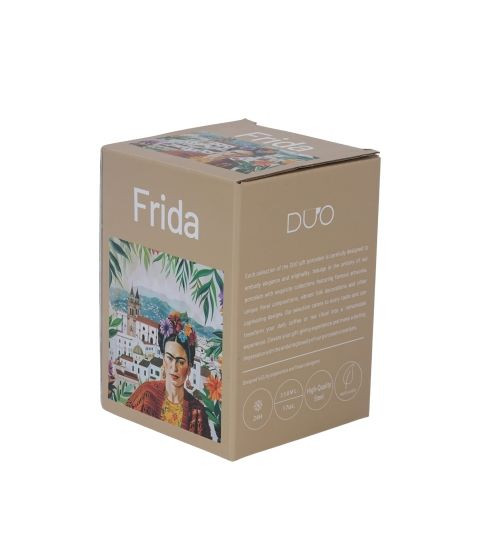 Elegantna darilna embalaža z enakim motivom dodatno poudari umetniško vrednost izdelka in ga naredi popolno izbiro za darilo ob posebnih priložnostih – za rojstne dneve, praznike ali kot unikatna pozornost za ljubitelje mehiške kulture in umetnosti.